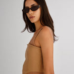 A refined take on a modern staple. This luxe rectangle frame features sculpted angles and polished gold hardware detailing at the temples. Understated yet striking, these sunglasses are designed for the girl with effortless style and a sharp eye for detail. Clean lines, timeless shape - made to go with everything.