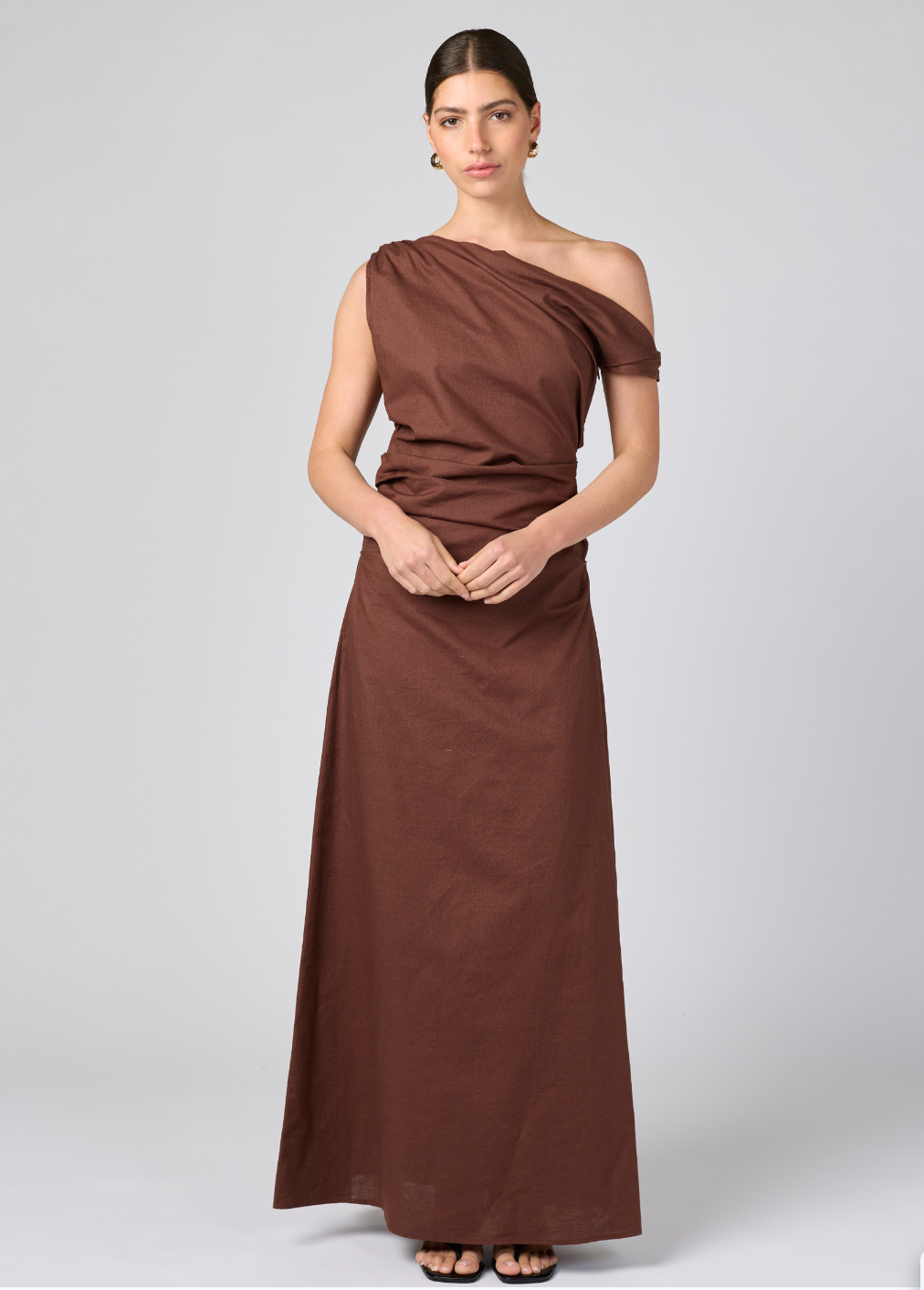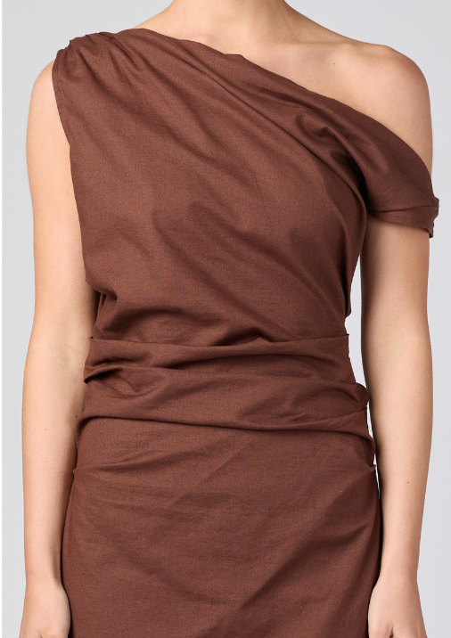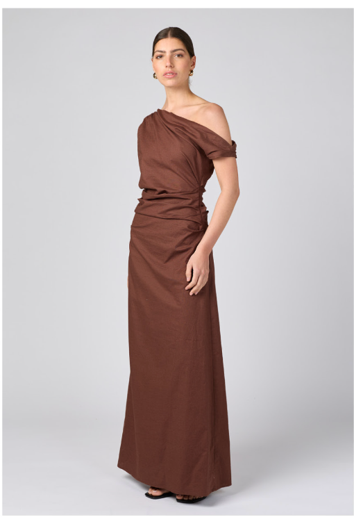 One Shoulder Maxi Dress Brown