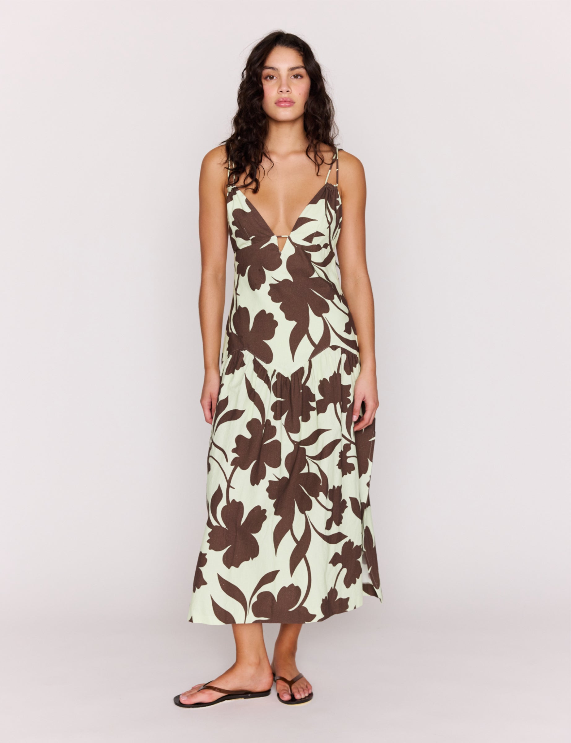 Esme Strappy Midi Dress - Chocolate Floral